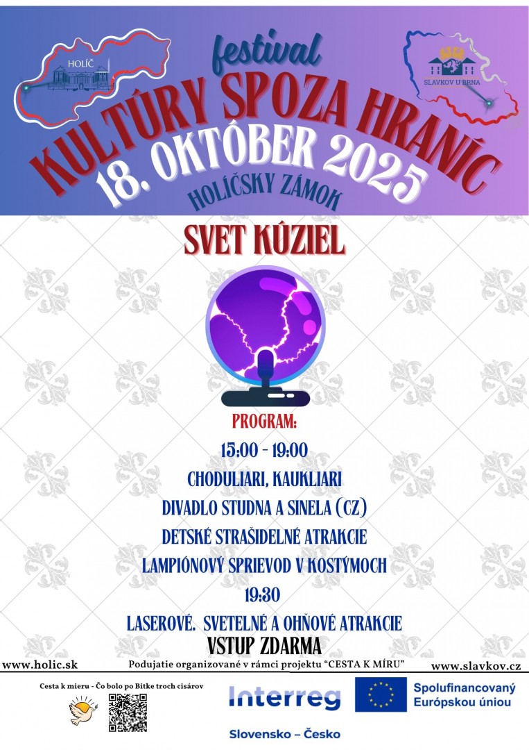 Festival bude prezentovat přeshraniční kulturu a podobně jako Partnerský den ve Slavkově podpoří přeshraniční výměnu kontaktů místním spolkům a kulturním aktérům Holíče a Slavkova. Zároveň bude Cesta k míru prezentována populární formou koncertů a vystoupení, která budou doplněna o prezentaci aktuálního programu projektu, pozvánky do míst realizace nebo na trasu cesty k míru. Na akcích bude i moderátorem přímo prezentována dotační podpora programu.