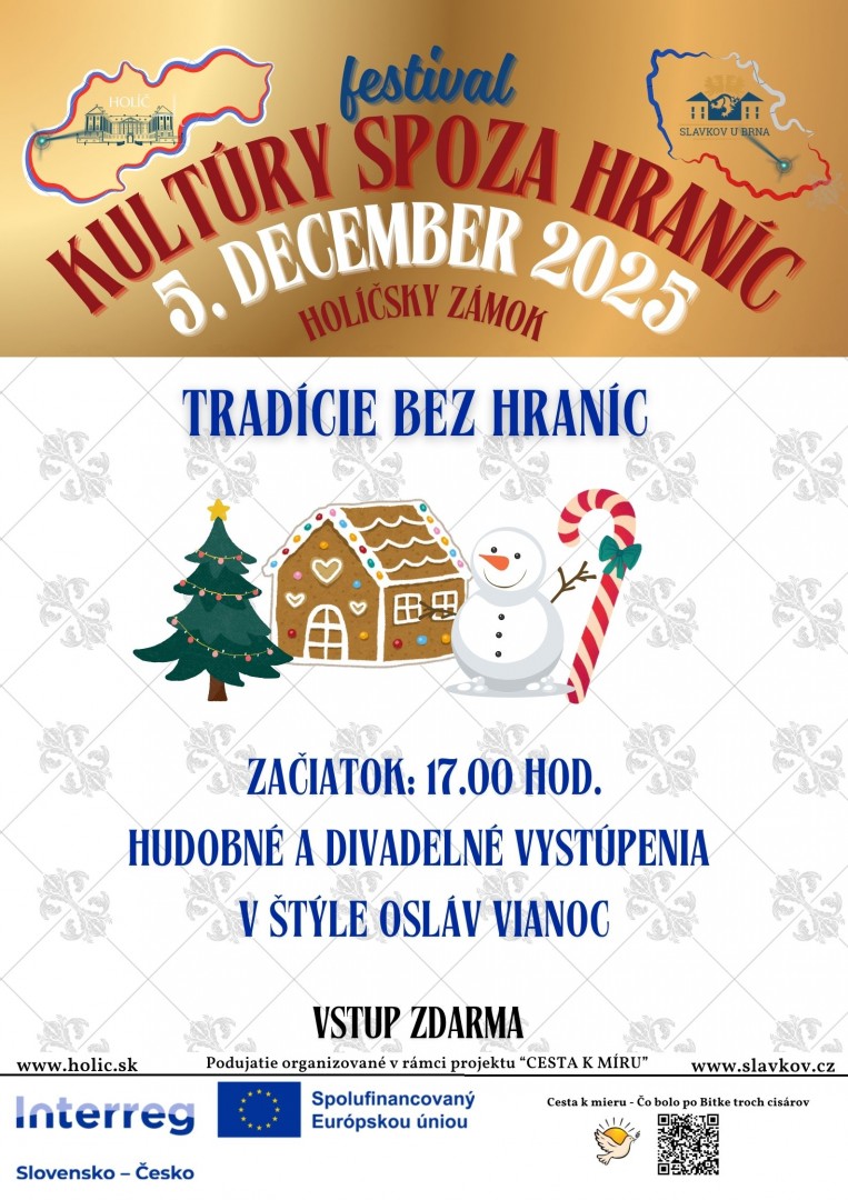 Festival bude prezentovat přeshraniční kulturu a podobně jako Partnerský den ve Slavkově podpoří přeshraniční výměnu kontaktů místním spolkům a kulturním aktérům Holíče a Slavkova. Zároveň bude Cesta k míru prezentována populární formou koncertů a vystoupení, která budou doplněna o prezentaci aktuálního programu projektu, pozvánky do míst realizace nebo na trasu cesty k míru. Na akcích bude i moderátorem přímo prezentována dotační podpora programu.